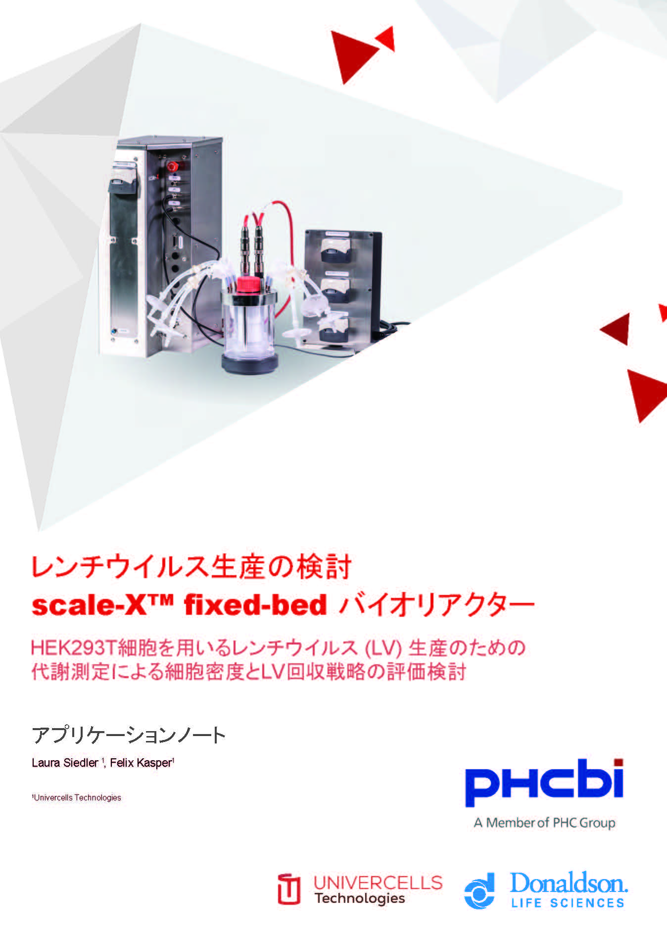 本研究において、HEK293T細胞株を用いたLV生産をscale-X hydro バイオリアクター (培養面積:2.4 m²) にプロセスを移行する際の生産性を検証しています。また、scale-X hydro バイオリアクターにおけるLV生産効率を評価するために2つの異なる回収戦略も検証されています。
