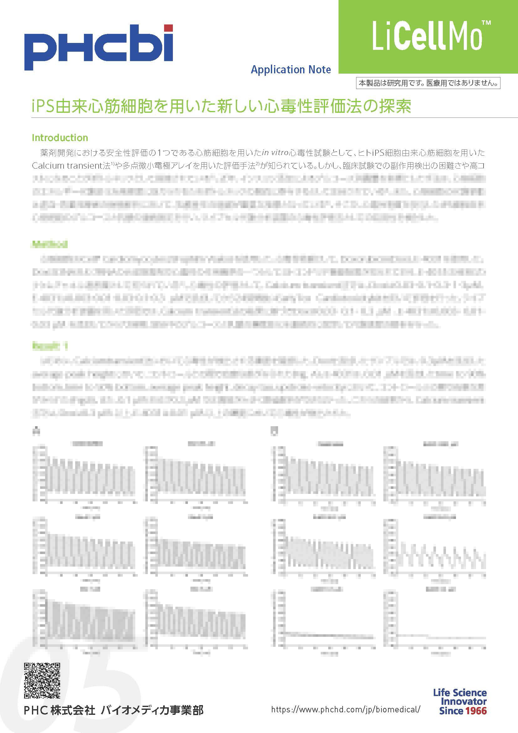 ヒトiPS細胞由来心筋細胞のグルコースと乳酸の代謝速度を観察することで、心毒性物質による代謝変化を高感度に検出した事例。従来法に比べてより低濃度で心毒性を検出できることが示唆された。